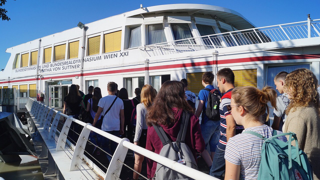 Igazi meglepetés vár a bécsi Humboldt Institut hallgatóira - az órák nem egy hétköznapi épületben zajlanak, hanem egy hajón! A 189 méter magas Bertha-von-Suttner-gimnázium az egyik dunai kikötőnél van kikötve, és 36 tanteremmel rendelkezik. Az ilyen tanulási feltételek minden bizonnyal felejthetetlen élménnyé teszik a tanfolyamot.